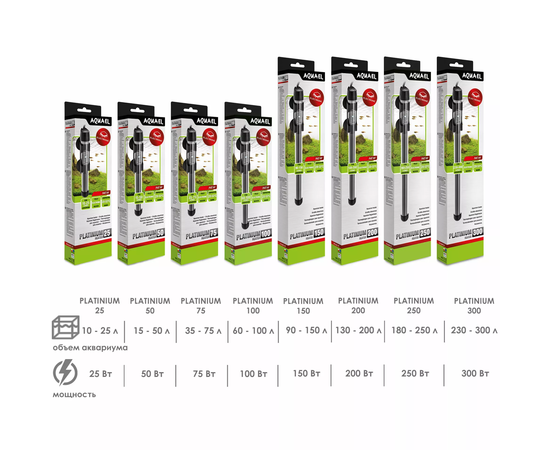 PLATINIUM HEATER стеклянные нагреватели с высокоточным электронным термостатом. Регулируют температуру в диапазоне от 20 до 33°C и поддерживают с точностью +/-0,4°C, благодаря встроенному электронному термометру.