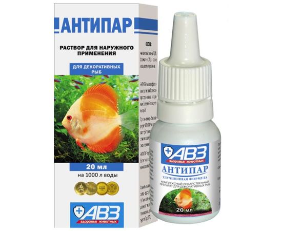 Антипар — антисептический комбинированный лекарственный препарат для наружной обработки аквариумных рыб, улучшенная формула.