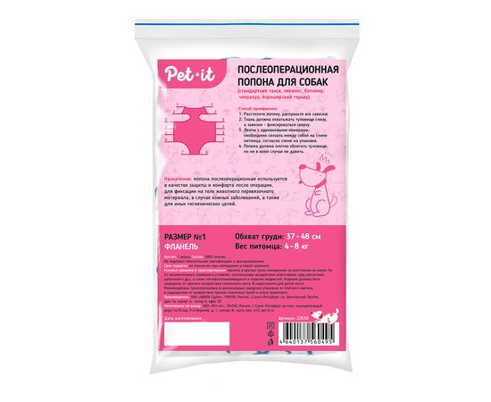 Pet-it послеоперационная попона для собак №1 37-48см 4-8кг, фланель, 22538