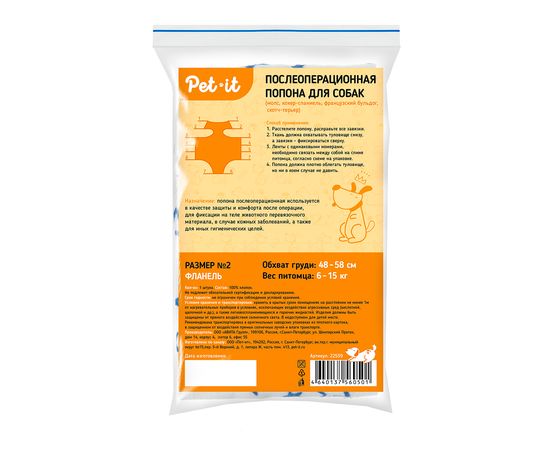Pet-it послеоперационная попона для собак №2 48-58см 6-15кг, фланель, 22539
