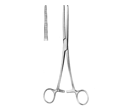 Зажим кровоостанавливающий зубчатый прямой, 250 мм (Бильрот)