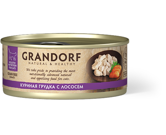 Влажный корм Grandorf для кошек, куриная грудка с лососем, 70 г