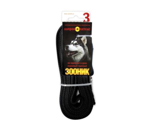 ЗООНИК Поводок капроновый с латексной нитью 3м, 20мм, черный 11423, 11423