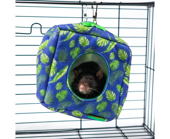 Теплый и мягкий домик-гамак из фетра станет любимым местом отдыха вашего питомца. Его удобно подвешивать в клетке при помощи карабинов. Можно стирать в стиральной машине.