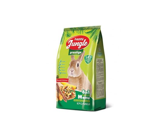 Happy Jungle – сухой корм для кроликов. Сбалансированная смесь из травяных гранул, зерна, овощей и фруктов обеспечит животное всеми необходимыми питательными веществами. Травы - составляют основу рациона, лучший источник питательных веществ и клетчатки, необходимой для правильного пищеварения. Злаки и бобовые - обладают высокой питательной и энергетической ценностью. Легко усваиваются и значительно улучшают обменные процессы в организме. Фрукты и овощи - прекрасное дополнение к основному рациону, насыщают организм витаминами и повышают иммунитет.