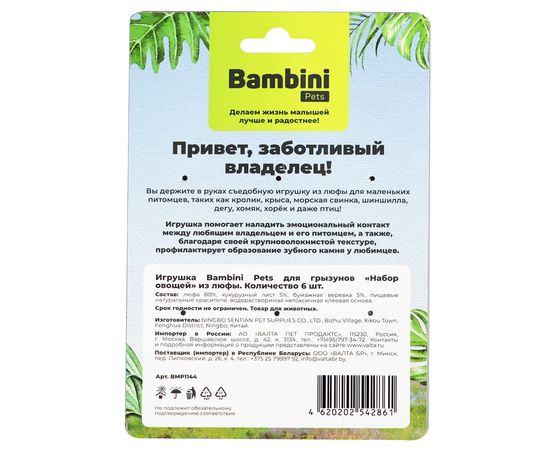 Игрушка Bambini Pets для грызунов Набор овощей из люфы 6 шт, BMP1144