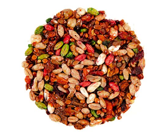 Состав: семена злаковых культур, просо, горох, сафлор, морковь, тыква сушеная, свекла, томат, перец сладкий, лен, петрушка
