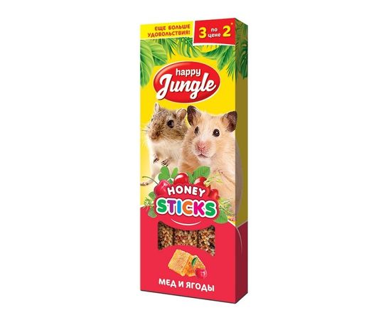Палочки Happy Jungle для мелких грызунов мед и ягоды, 3 шт. 90г