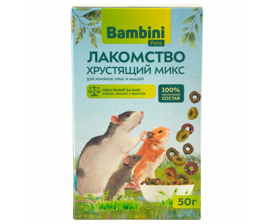Лакомство Bambini Pets Хрустящий микс для крыс и хомячков, 50 г., BMP547590