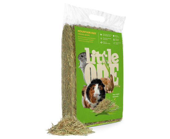 Горное сено Little One — ароматное, очищенное и высушенное, собрано в экологически чистых горных районах. Сено является основной составляющей рациона всех травоядных животных (кроликов, морских свинок, шиншилл, дегу), поэтому важно обеспечить его постоянное наличие в клетке. Сено Little One имеет разнообразный ботанический состав. Оно богато грубой клетчаткой, что необходимо для здоровья зубов и оптимального пищеварения декоративных животных. Так как животные могут зарываться в сушеной траве и строить из нее гнезда, сено также служит прекрасной подстилкой и развлечением для всех домашних питомцев.