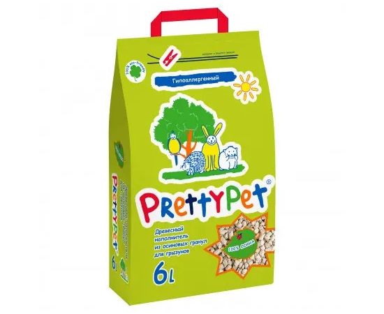Наполнитель PrettyCat для грызунов и птиц древесный из осиновых гранул 2 кг (6 л)