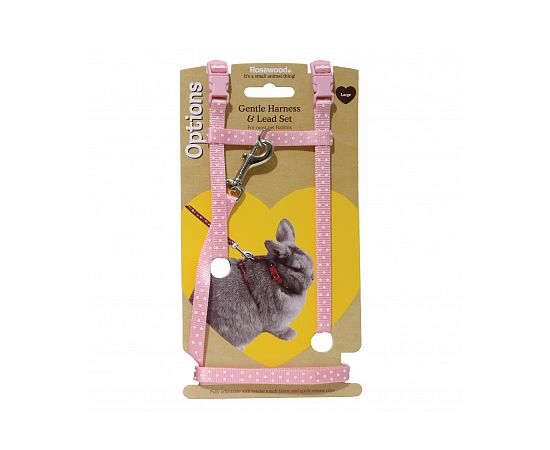ROSEWOOD Шлейка для кроликов с поводком "Рисунок белая точка", розовая, L (Великобритания), 19337/pi,19337/pink