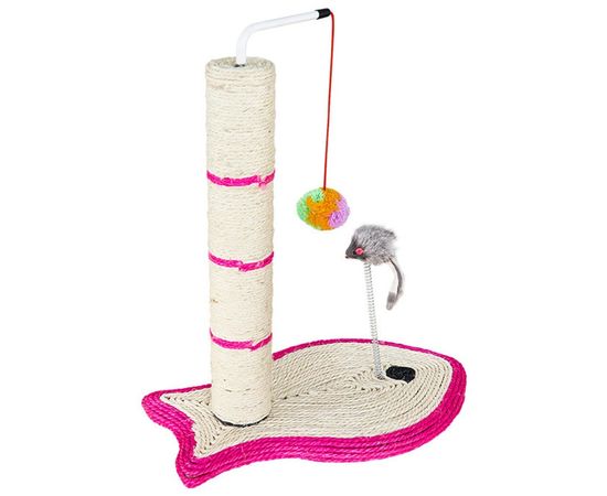 №1 Когтеточка напольная в форме рыбы с игрушкой на пружине, коричневая, 50x20x25см, Дсг052*