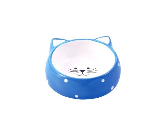 Миска керамич для кошек 250 мл Мордочка кошки голубая, 211192