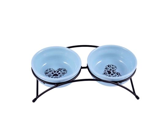 Миски на подставке для собак и кошек двойные 2* 290 мл синие, 211253