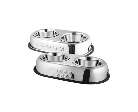 Кормушка металл овальная двойная с резинкой №2 2 х 0,40л.
