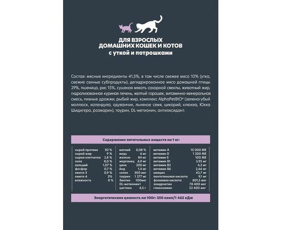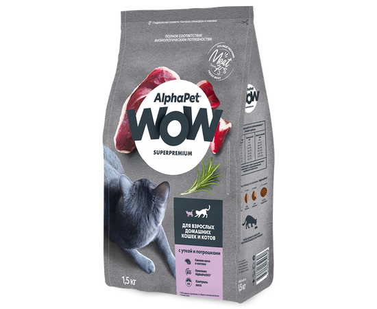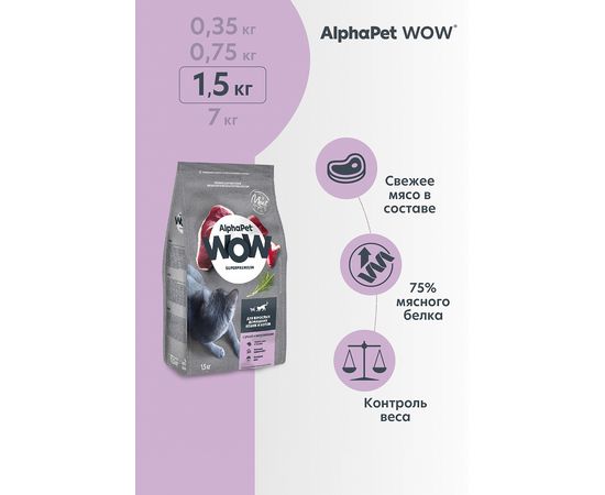 Сухой корм AlphaPet WOW для кошек, утка с потрошками, 1,5кг