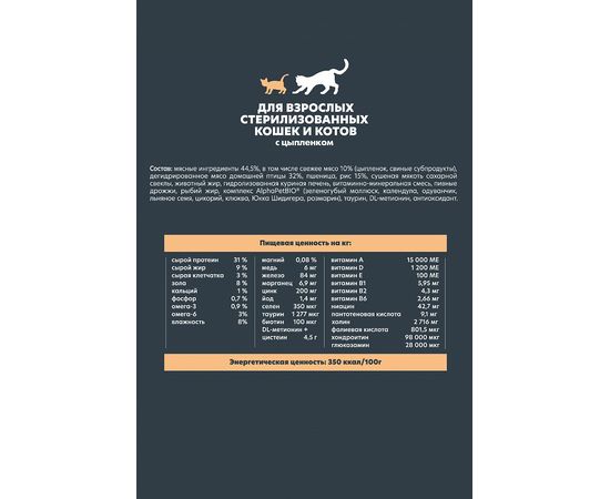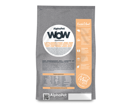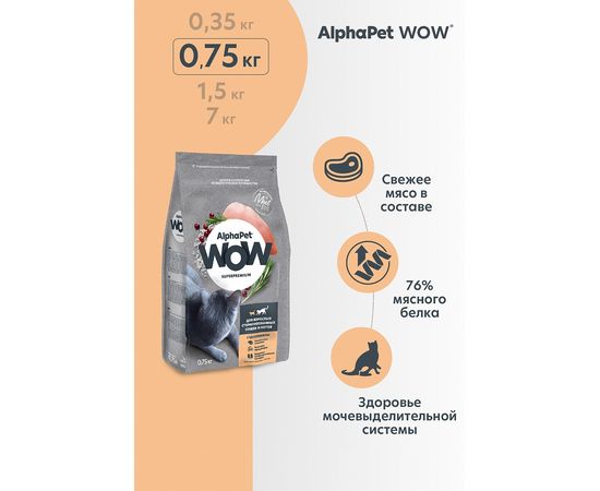 Сухой корм AlphaPet WOW для стерилизованных кошек, с цыпленком, 750 гр