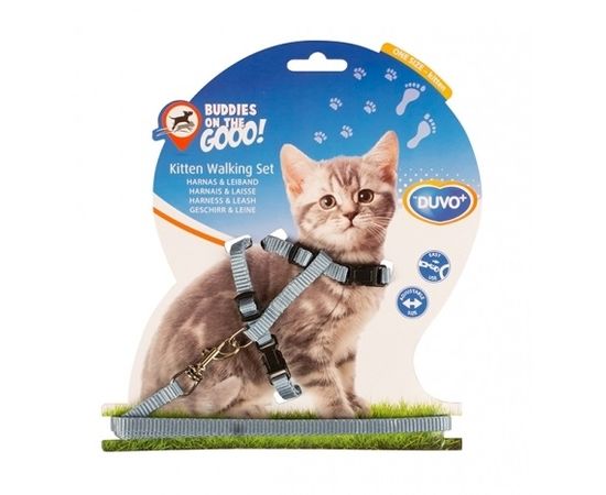 DUVO+ Шлейка с поводком для котят, голубая, 15-25см/8мм-125см (Бельгия)