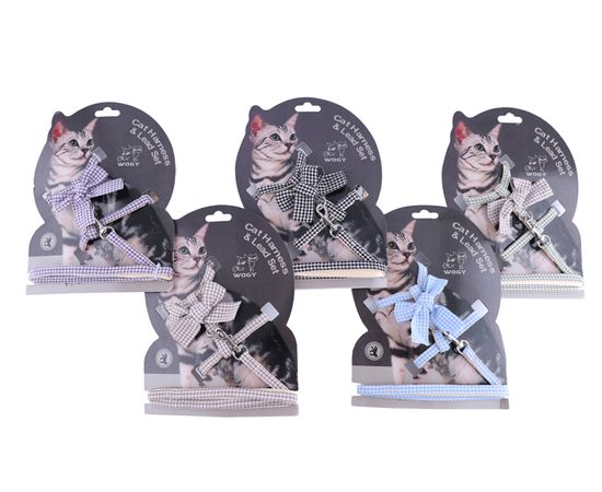 Набор WOGY д/кошек 2пр:поводок 120Х1см+шлейка с бантом микс 109228686