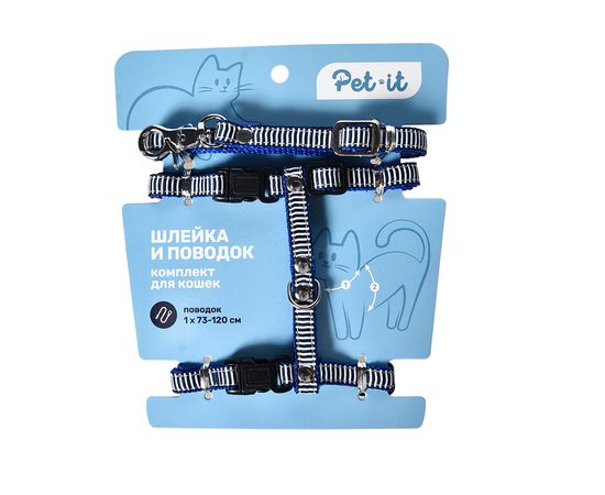 Pet-it комплект для кошек: шлейка и поводок, синяя полоска