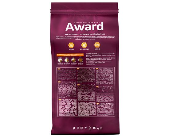 Добавки на 1кг: таурин 0,22%, L-карнитин 150 мг, Омега-3 - 0,5%, Омега-6 - 2%.