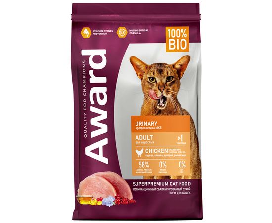 AWARD Urinary корм для взр. кошек для профил. МКБ с курицей, клюк, цикор и рыб. жиром, 10 кг,7173655