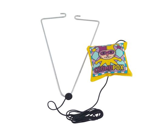 Забавная игрушка для кошек. Крепится с помощью специального держателя над дверным проемом. Может показаться, что держатель из проволоки соскочит, если кошка потянет игрушку на себя. Но это не так. Похожие игрушки пользуются большой популярностью за рубежом, и животным почти никогда не удается стянуть держатель с арки дверного проема. Кошка обязательно проявит интерес к игрушке, так как она содержит корень валерианы и кошачью мяту, а дверной проем является частым местом, через которое проходит питомец. Игрушка держится на резинке. Длину резинки можно регулировать, если потянуть за пуговицу на держателе. Длина резинки 170 см. Поэтому она в стандартном положении находится на уровне кошки, так как вышина дверного проема обычно 200 см.