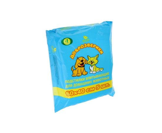 Доброзверики подстилки для животных 60*40 см (5 штук) "Экономичная упаковка" ,451262
