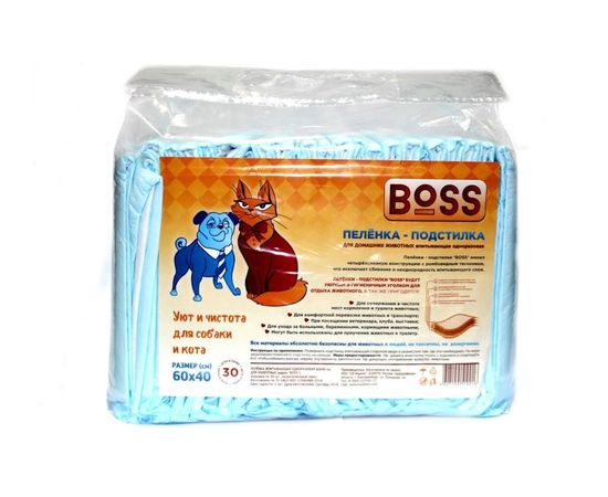 Подстилка BOSS впитывающая одноразовая для животн 60*40 /30шт/ (12уп./кор.)