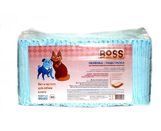Подстилка BOSS впитывающая одноразовая для животн 60*60 /30шт/ (8уп./кор.)
