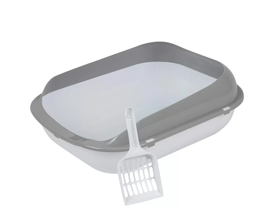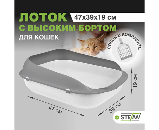Туалет-лоток для кошек с совком STEFAN, средний (M) 47х39х19, белый