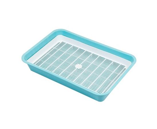 Лоток для кошек имеет низкие бортики и специальную сетку, благодаря чему возможно использование лотка без применения наполнителя для туалетов. Изготовлен из нетоксичной и безопасной для здоровья животного пластмассы. Туалет легко чистить и мыть.