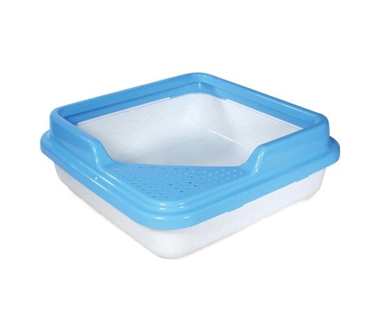 Туалет для кошек квадратный с бортом "Куб", белый мрамор/голубой 435*435*145 мм, 20451007