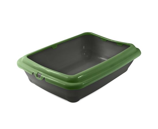 Туалет для кошек прямоугольный с бортом "Штиль", серый/оливковый 455*350*125 мм, 20452015