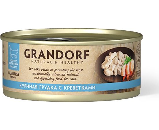 Влажный корм GRANDORF для кошек, куриная грудка с креветками, 70г