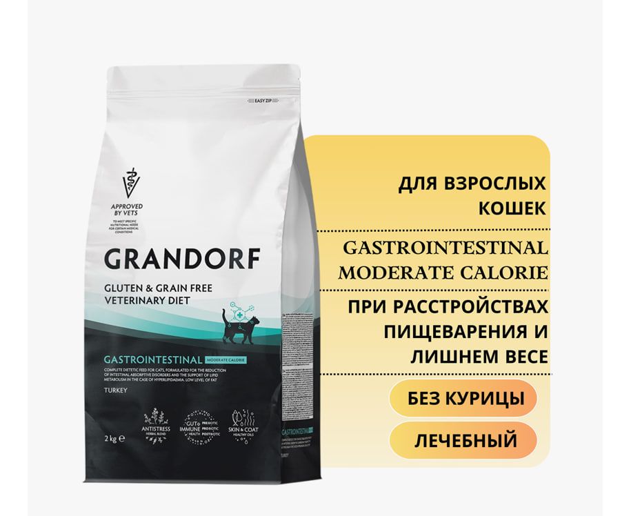 GRANDORF VET Gastrointestinal Moderate Calorie для кошек при расст пище склон к наб.веса 0,4 кг,3168