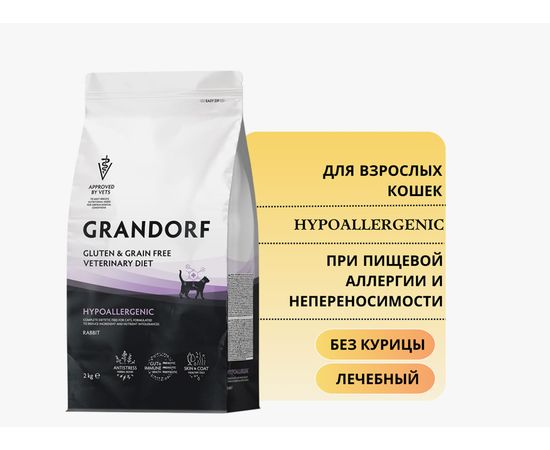 GRANDORF VET Hipoallergenic для кошек с пищевой аллергией или непереносимостью 2кг, 3649