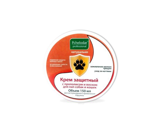 Крем защитный для лап животных — инновационное средство для защиты лап животных во время прогулки от неблагоприятного воздействия противогололёдных химических реагентов и низких температур, для предотвращения травмирования кожи подушечек лап снежным настом, гравием или асфальтом. Входящие в состав натуральный пчелиный воск, экстракт прополиса и ланолин создают надежную защитную пленку на подушечках лап животного, оказывают выраженное антисептическое, успокаивающее и ранозаживляющее действие, натуральные растительные масла и витамин Е прекрасно увлажняют, питают и восстанавливают кожу лап животных, обеспечивая быстрое заживление мелких ран и трещин. Крем-защитный способствует размягчению загрубевшей и утолщенной кожи подушечек лап животного.