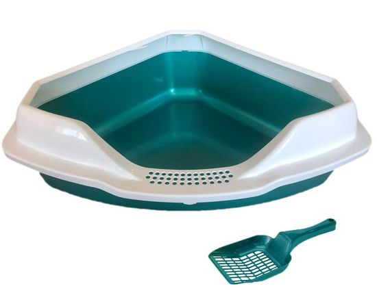 HOMECAT 56х42х17 см туалет для кошек угловой с бортиком и совком бирюзовый перламутр, 75252