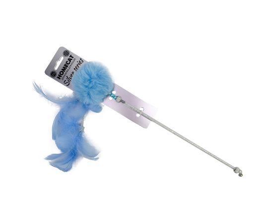 HOMECAT SILVER SERIES 42 см дразнилка для кошек помпон с перьями голубая, 78419