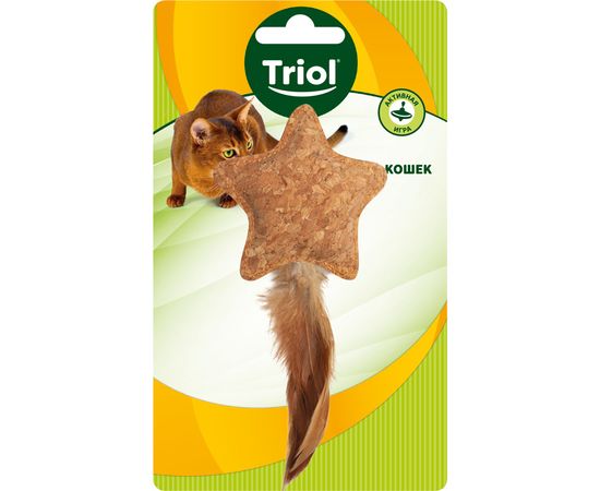 Игрушка для кошек из пробковой коры "Звездочка с перьями", 80/150мм