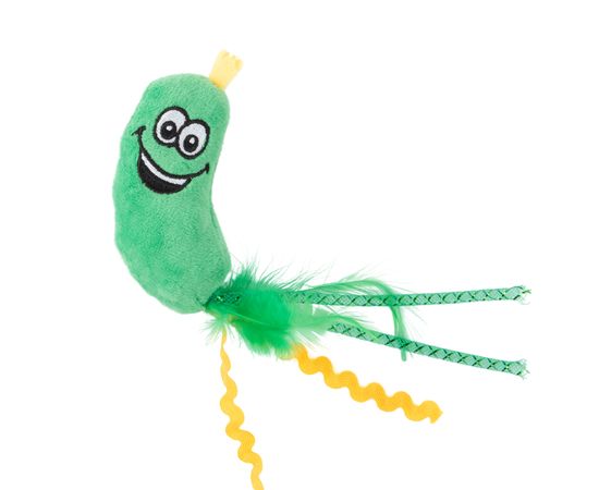 Игрушка Mr.Kranch для кошек Огурчик плюшевая с кошачьей мятой и перышками 17 см зеленая