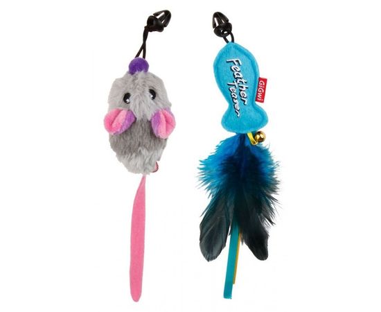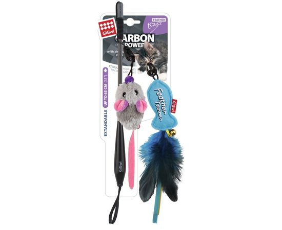 Дразнилка телескопическая с двумя насадками (рыбка + мышка) 30см, 85011
