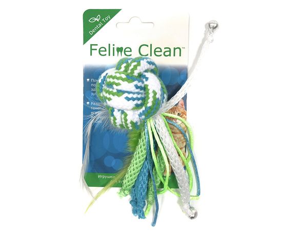 Feline Clean игрушка для кошек Dental Мячик из каната, ленты и перья., 23555