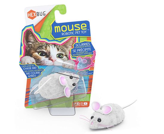 HEXBUG Игрушка для кошек интерактивная, микроробот "Мышка Уайт", белая, 6.5х4х2.8см (США), 480-4081-,480-4081-00GL12