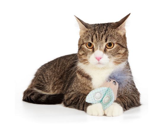 Игрушка сделана из плотной износостойкой ткани в виде забавной букашки с плюшевыми крылышками. Украшена натуральными перьями и дополнительно пропитана кошачьей мятой, что делает её ещё более привлекательной для кошек. Отлично подходит как для игр с хозяином, так и для самостоятельного развлечения. Отлично подойдет для котов, кошек и котят.