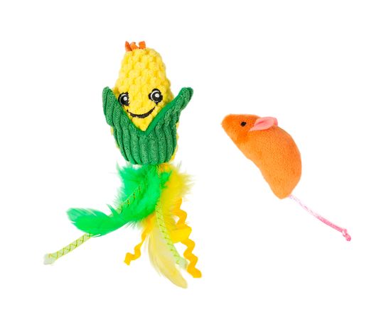 Набор игрушек Mr.Kranch Кукурузка и мышка из прочного текстиля понравится котам и кошкам всех пород. Аромат кошачьей мяты подогреет интерес к игре и разбудит охотничьи инстинкты. Игрушки помогают кошкам оставаться в тонусе, стимулировать активность и поддерживать здоровье когтей. Мягкие тактильно приятные перышки обязательно понравятся вашему питомцу, добавив в игру азарта и веселья. Игрушка предназначена для совместных игр и самостоятельных игр.