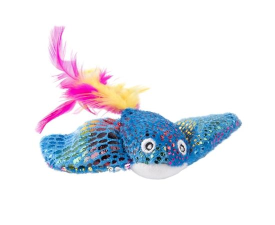 Игрушка Mr.Kranch для кошек Скат плюшевая с кошачьей мятой и перышками 16см голубая, MKR542274