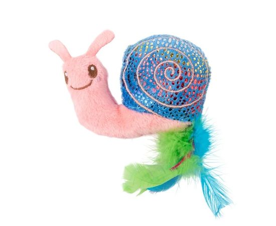 Игрушка Mr.Kranch для кошек Улитка плюшевая с кошачьей мятой и перышками 18см розовая, MKR542335